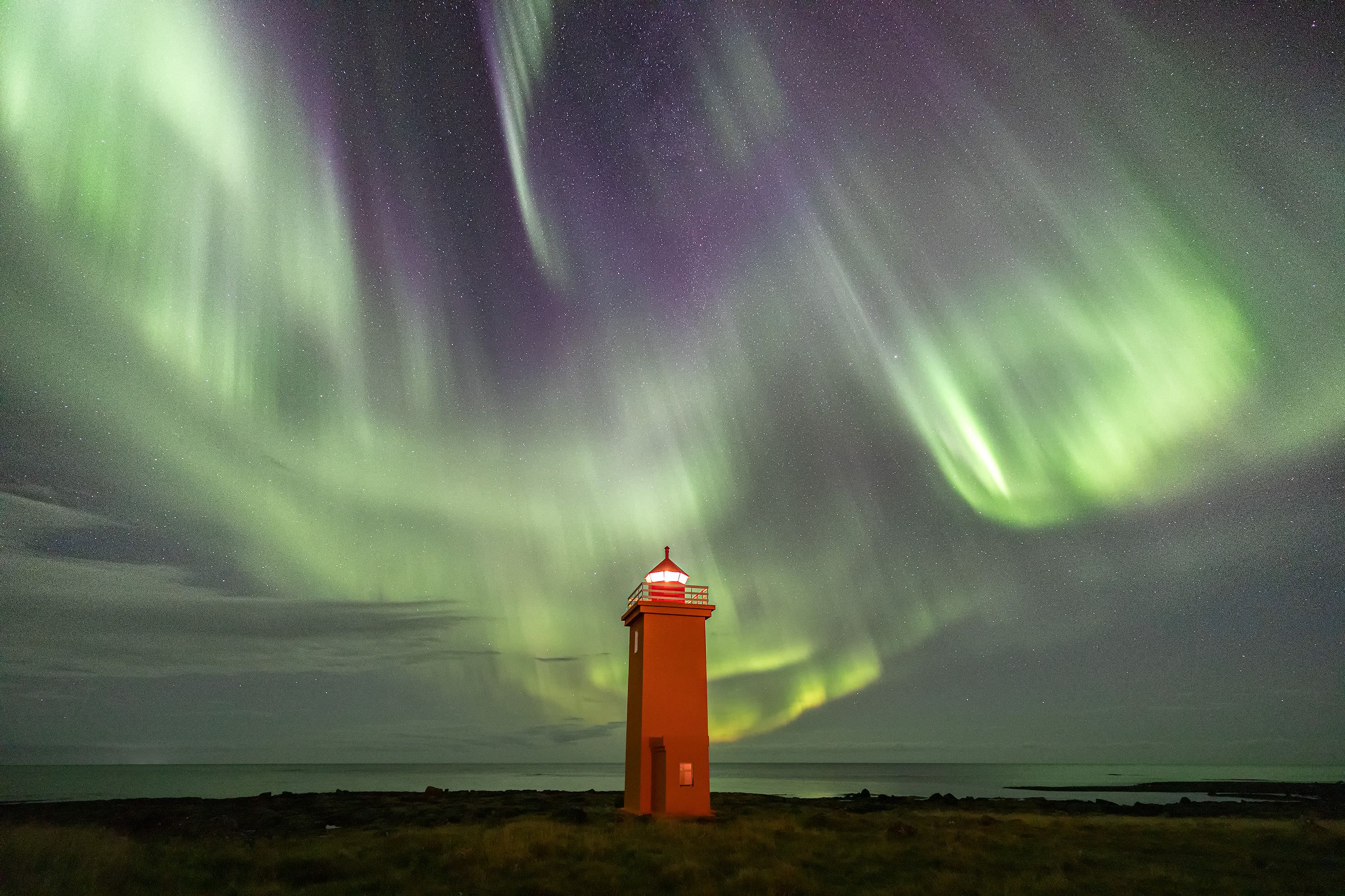 Aurora Borealis over Reykjanes Peninsula, Iceland